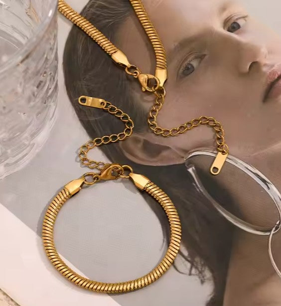 El Conjunto Snake redefine la elegancia minimalista con su diseño sofisticado y moderno. Compuesto por un collar y una pulsera que puedes lucir juntos o por separado, este conjunto es perfecto para cualquier ocasión. Su versatilidad te permite crear combinaciones únicas que realzan tu estilo y personalidad. Ideal para quienes buscan un toque de distinción en cada detalle.